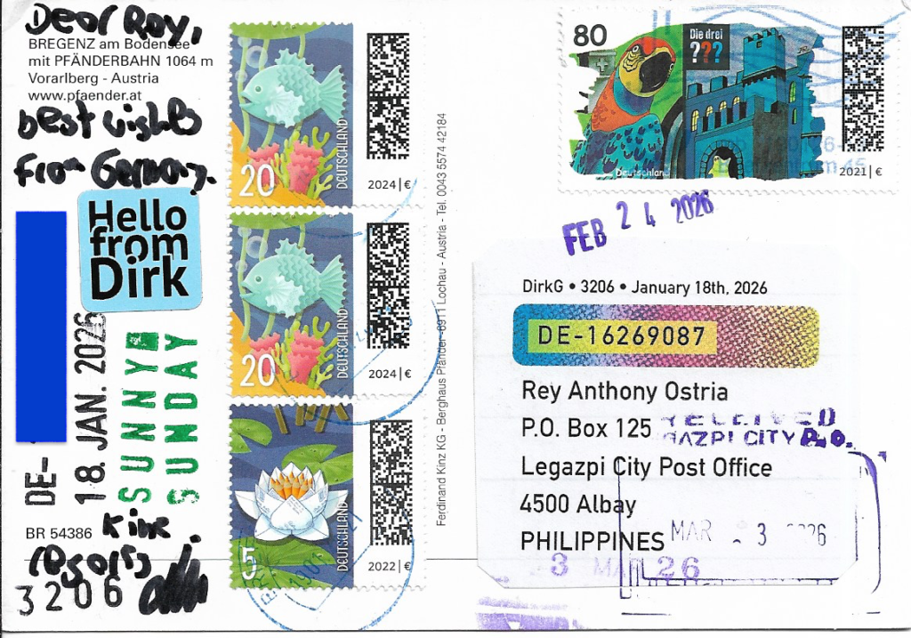 | STAMP: Die Drei ???, Fish, Lotus | DATES: January 18, 2026 (Made) February 24, 2026 (Received) March 3, 2026 (Received) |