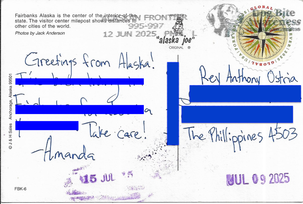 | STAMPS: Compass Rose Forever Stamp | DATES: June 12, 2025 (Written) July 9, 2025 (Received) July 15, 2025 (Received) |
