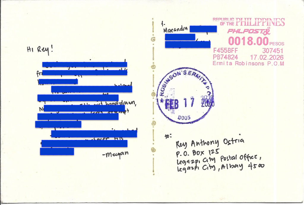 | NOTE: Used metered stamp on the postcard, but this was sent with MNH stamps | NOTE: Direct Swap (Reddit) |