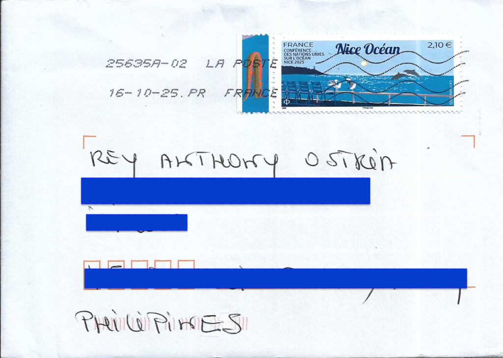 | STAMPS: Third United Nations Ocean Conference in Nice | DATES: October 16, 2025 (Sent) November 7, 2025 (Received) November 14, 2025 (Received) |
